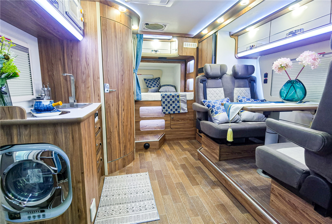 | 正副駕駛椅包 (中間菱形格) | 豪華衛浴間 (ABS吸塑工藝) | 升降桌板(進口單腿) | ||||||